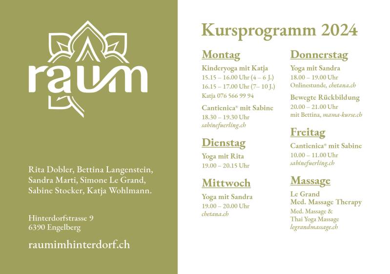 Yoga, Kinderyoga, Cantienica-Training, Schwangerschaftspilates, Rückbildung, Massage und mehr